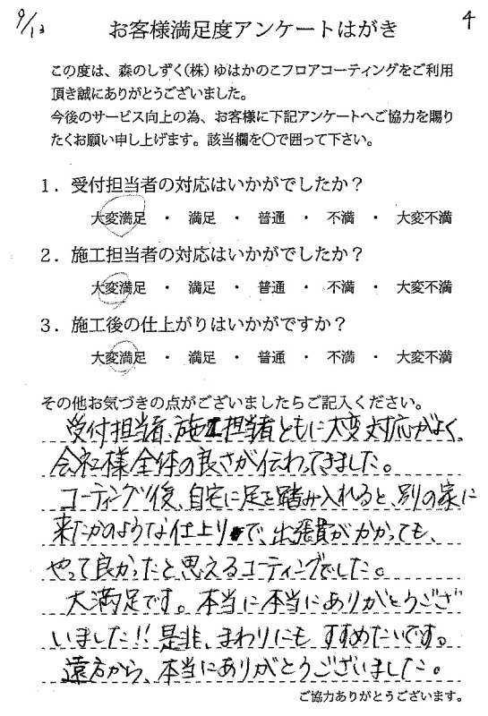 施工担当者の緒方さんの対応も大変丁寧で安心してお任せすることができました。ありがとうございました。