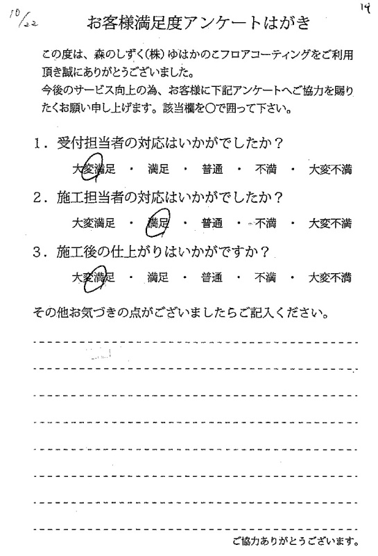 来てくださったお二人とも対応良く、施工も含めて大変満足しています。またよろしくお願いします。